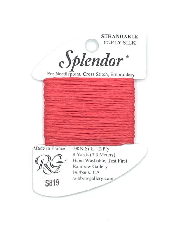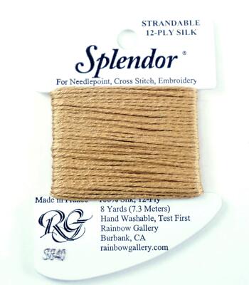 A 12-ply silk that is composed of three 4-ply bundles twisted together. The twist of each individual strand is tighter than most silks making it easier to use. Many of the usual problems experienced with silk will not occur with Splendor. Anyone that stitches with cotton floss will have no problem with it. Dyed to match many of the Splendor colors are Splendor Silk Ribbon, Grandeur, Elegance, and Subtlety.